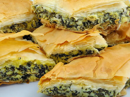 Bake in the heated oven on the middle rack for 35 minutes or until the phyllo turns a nice golden brown. Add the rest of phyllo dough layer and don't forget paint every layer by melted butter and cut it by knife before bake. Let stand for at least five minutes before draining and transferring to a large bowl. We did not find results for: In a small bowl, mix melted butter and oil;